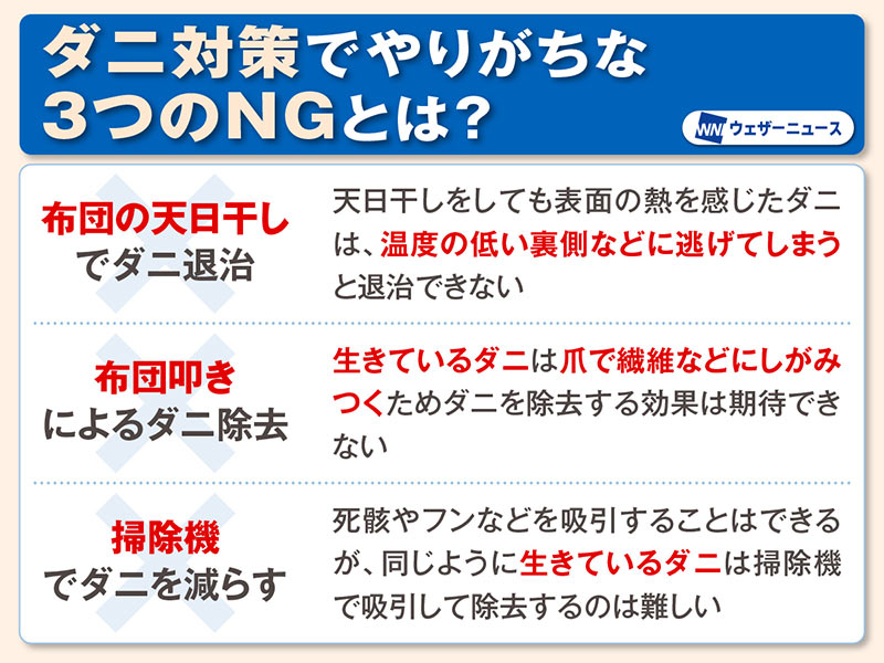 「天日干ししたからといって、布団などからダニがいなくなるわけではありません。