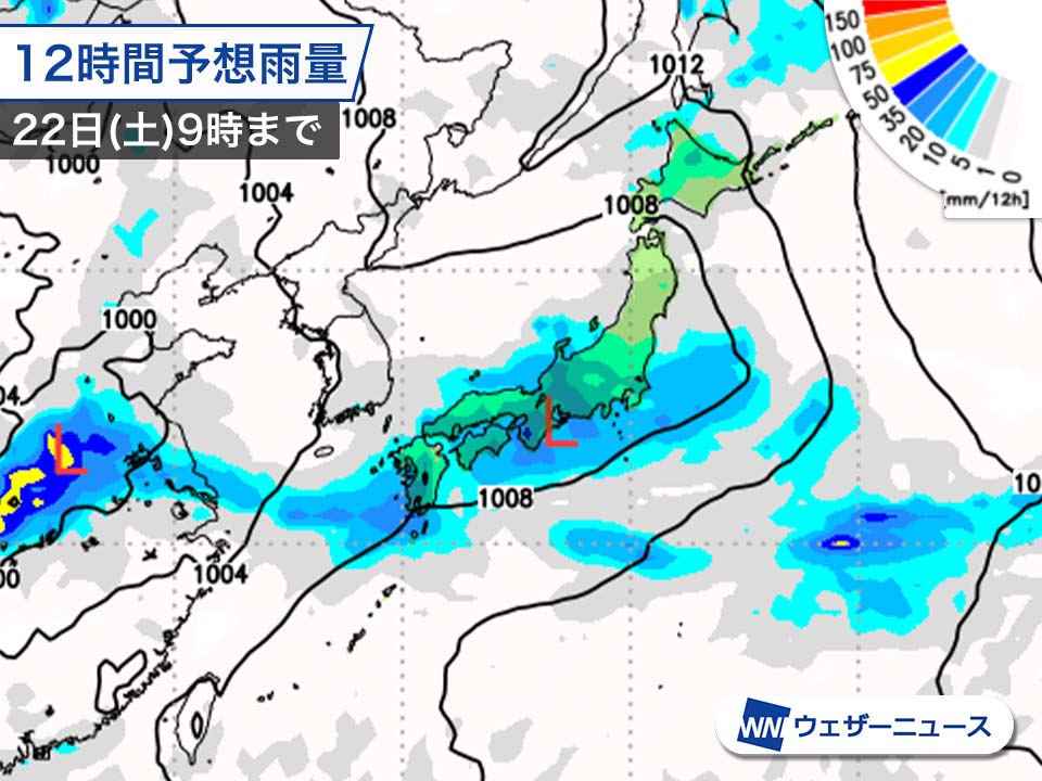 しかし、21日(金)からは再び前線が本州の南岸付近まで北上してきます。前線上を低気圧が東進し、前線の活動が活発になる予想です。