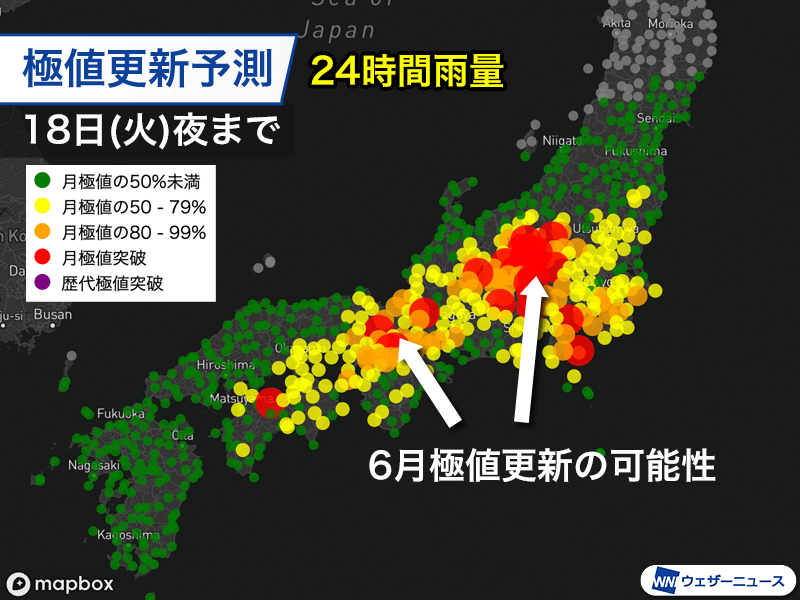 6月としては記録的な大雨の可能性