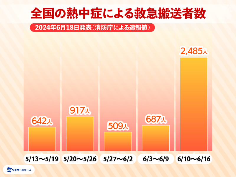 熱中症による救急搬送者が急増 全国で約2500人に