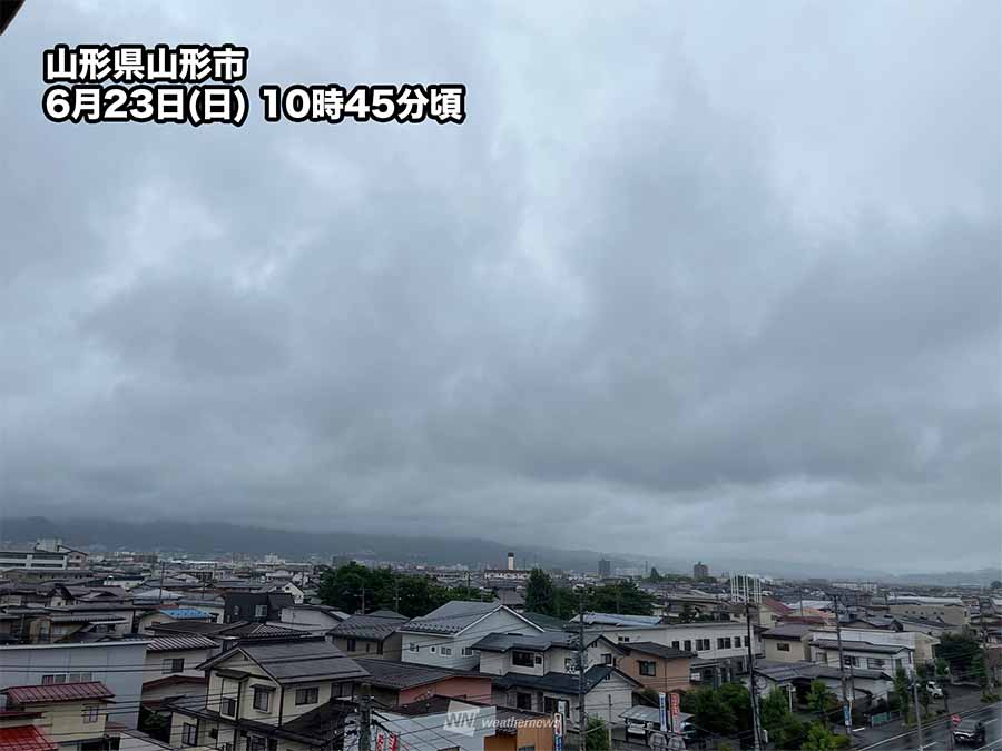 今日の東北地方は梅雨前線の接近により雲が広がっていて、南部ほど雨が降っています。一方奄美地方では、梅雨前線が離れて太平洋高気圧に覆われ、晴れや曇りの天気となっています。