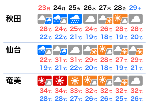 各エリアの天気予報