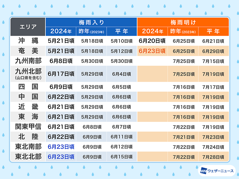 | 奄美 | 6月23日頃 | 6月25日頃 | 6月29日頃 |