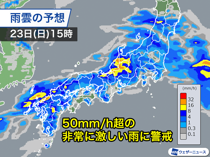 午後も梅雨前線に近い九州北部から中国、北陸にかけて活発な雨雲が通過しやすく、夕方以降は梅雨前線の南下に伴って九州南部や四国にも発達した雨雲が広がります。1時間に30mmを超えるような激しい雨が断続的に降り、局地的には50mm以上の非常に激しい雨となる見込みです。