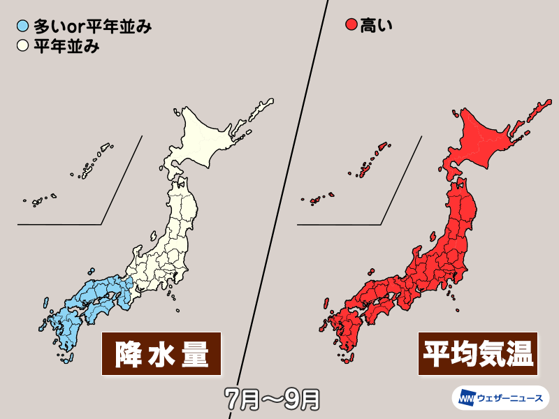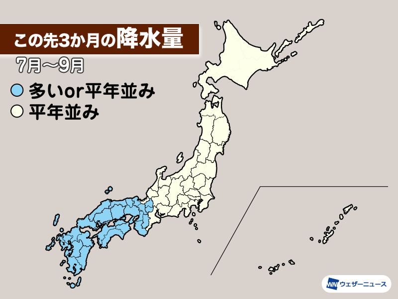 7月は西日本を中心に雨量が多くなる可能性