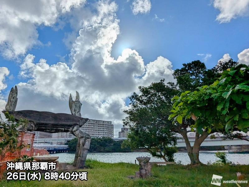 那覇市は8時30分前に30℃を突破し、9時40分までの最高気温は32.1℃となっています。20日から6日連続の真夏日です。先島諸島では全域で30℃を超えました。