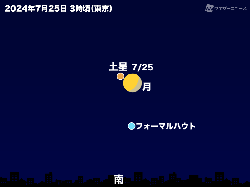 25日(木)は月と土星がどんどん近づいていき、日の出のあとには土星が月に隠される「土星食」が起こります。今回は日本全国で土星食を見ることができます。日本の広範囲で土星食が見られるのは、2014年9月28日以来で10年ぶりです。