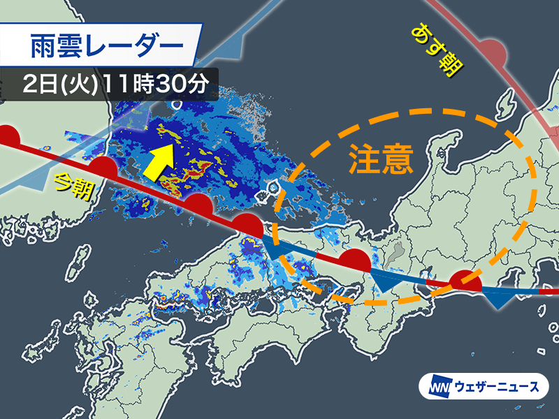 大阪や名古屋でも帰宅時間帯は本降りとなることがあり、雨の降り方に注意が必要です。関東でも夕方以降は雨の可能性があり、外に出る前に雨雲の様子をご確認ください。