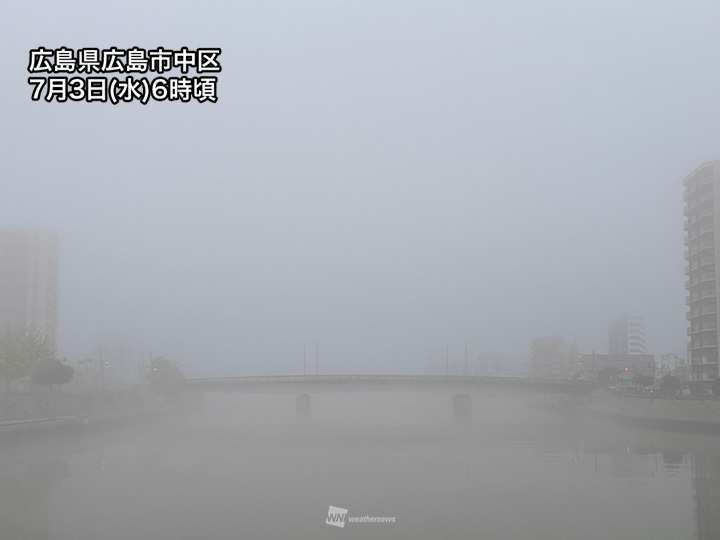 瀬戸内海沿岸は濃い霧で視程悪化