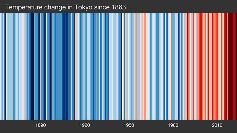 地球温暖化や気候変動に関心を持つきっかけとして、Climate Stripesに注目してみてはいかがでしょうか。