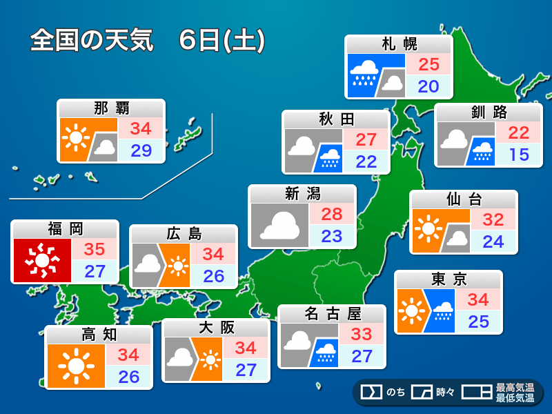 明日7月6日(土)の天気予報…