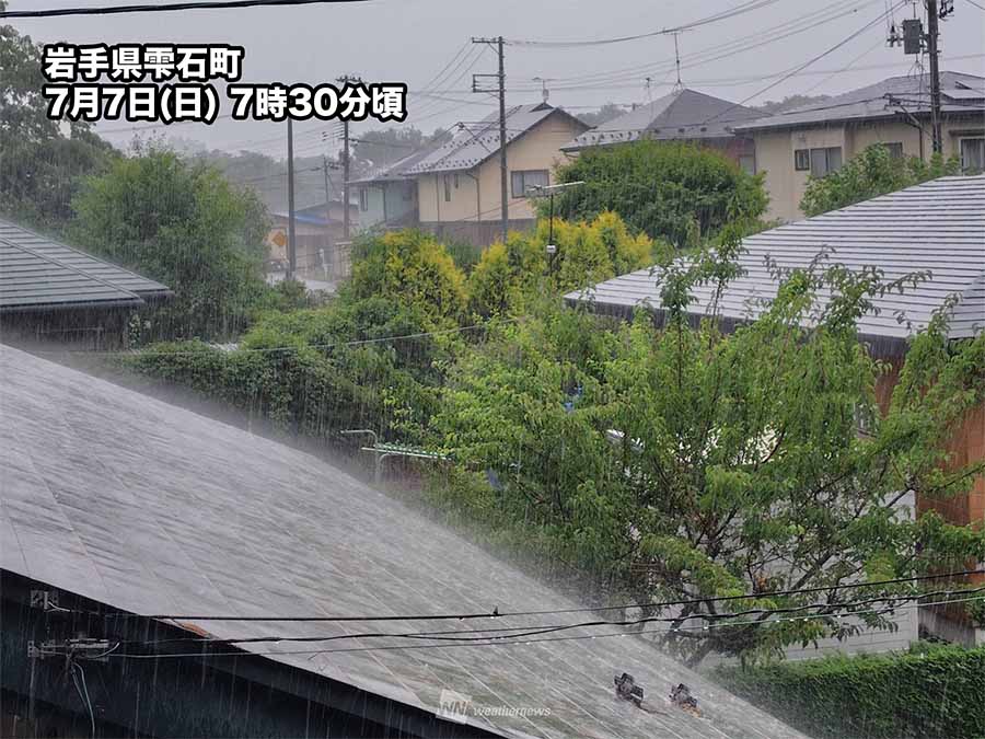 東北地方ではこのあとも前線が停滞し、昼すぎには前線上の閉塞点が通過するため一時的に激しい雨の降る可能性があります。雨量がかさんで大雨となる可能性もあるため、道路冠水や低地の浸水等にご注意ください。