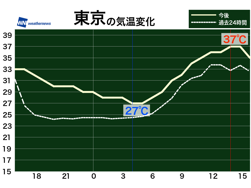 朝から急速に気温が上がり、昼間の気温は30℃を大きく上回ります。