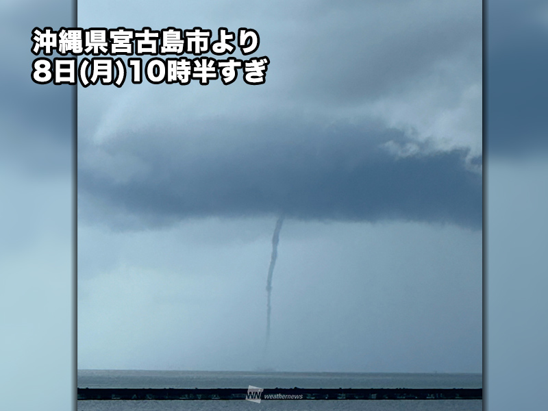 先島諸島の上空約5500mには-6℃の寒気が流れ込み、地上との気温差が大きくなって大気の状態が不安定になっています。南の海上で形成された発達した雨雲が北西に向かい、宮古島からは海上に発生した竜巻の報告も寄せられました。