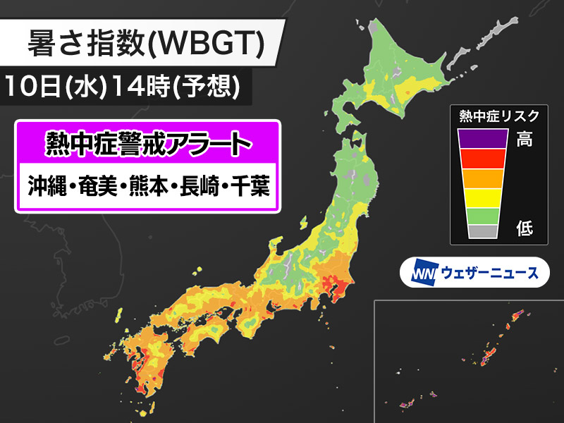 千葉や九州など5県に熱中症警戒アラート 明日10日(水)対象