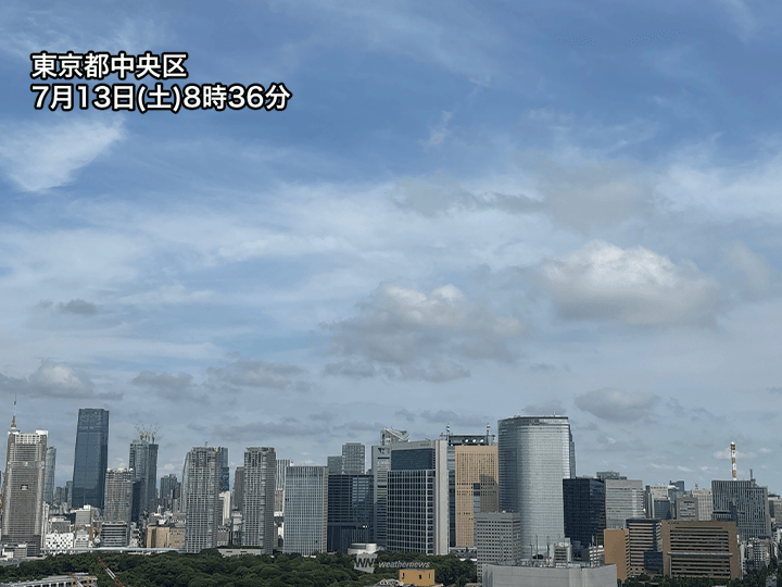 三連休初日の今日13日(土)は梅雨前線が少し離れ、関東は日差しの届いている所が多くなっています。ただ、午後はにわか雨の可能性があるため、空の変化に注意が必要です。