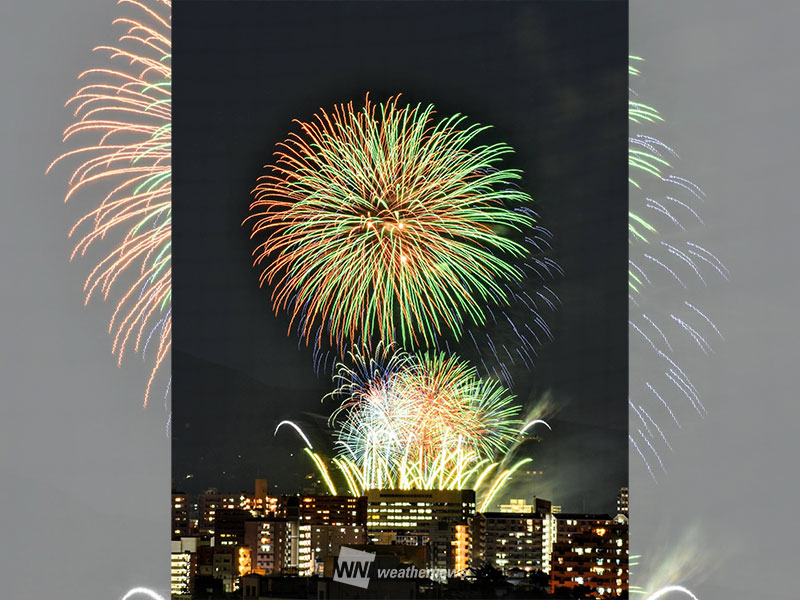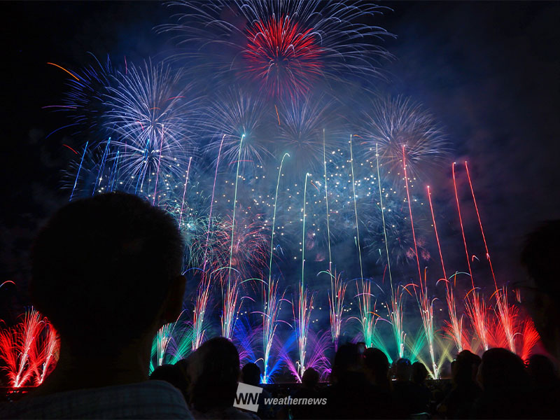 この週末は全国的に真夏の暑さとなり、西日本や東日本では35℃以上の猛暑日となるところもある見込みです。花火大会が開催される夜間も、あまり気温が下がらず蒸し暑く感じられます。適度な水分補給や暑さ対策を欠かさず行い、熱中症に注意しながら花火大会をお楽しみください。