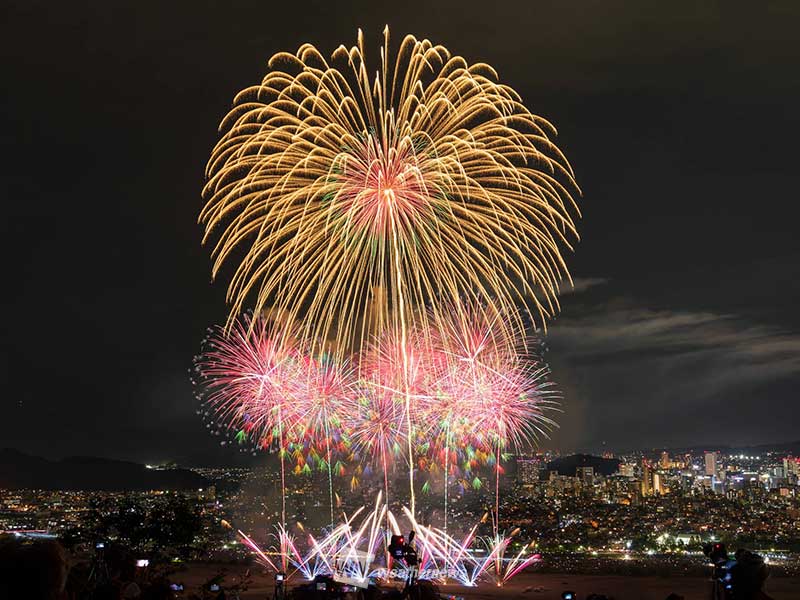 東北唯一の三尺玉打ち上げ、超ワイドスターマインなど、豪華打ち上げプログラムで夏のはじまりを告げる花火イベントです。大迫力の音と花火の共演を楽しむことができます。