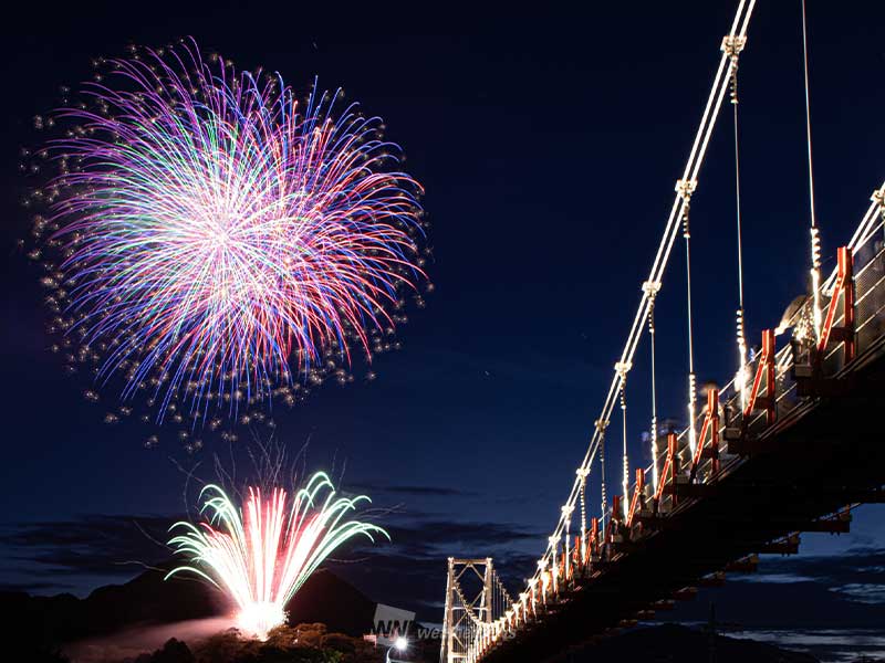 あゆのつかみどり大会(有料)やステージイベントなど、子どもから大人まで楽しめるイベントが数多く予定されています。 まつりを締めくくる花火大会では、緑川河川敷から打ち上がる約3000発の花火が夜空と川面を彩ります。