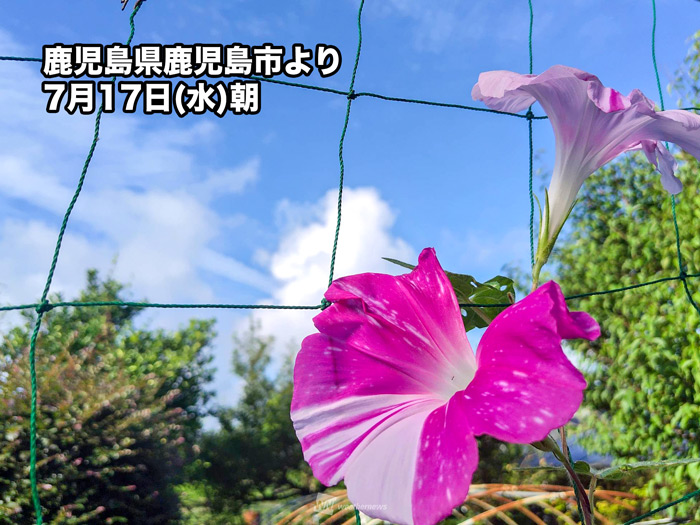 今日7月17日(水)、鹿児島地方気象台は「九州南部が梅雨明けしたとみられる」と発表しました。平年より2日遅く、昨年より8日早い梅雨明けです。