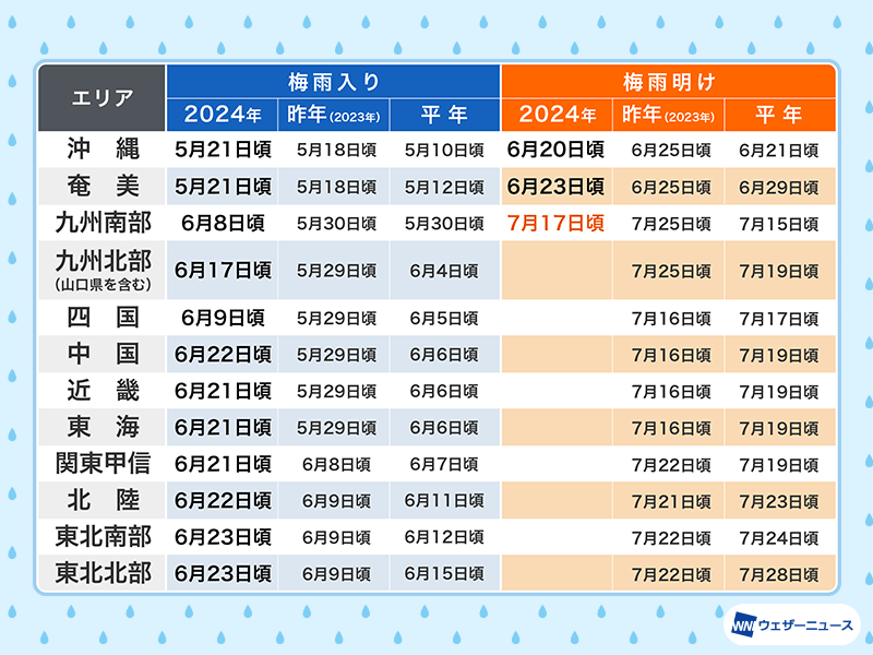 平年より短い一方、鹿児島などは雨の多い梅雨に
