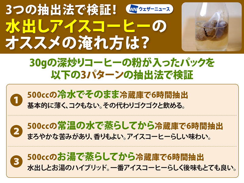 3つの抽出法で検証! 水出しアイスコーヒーのおいしい淹れ方は?