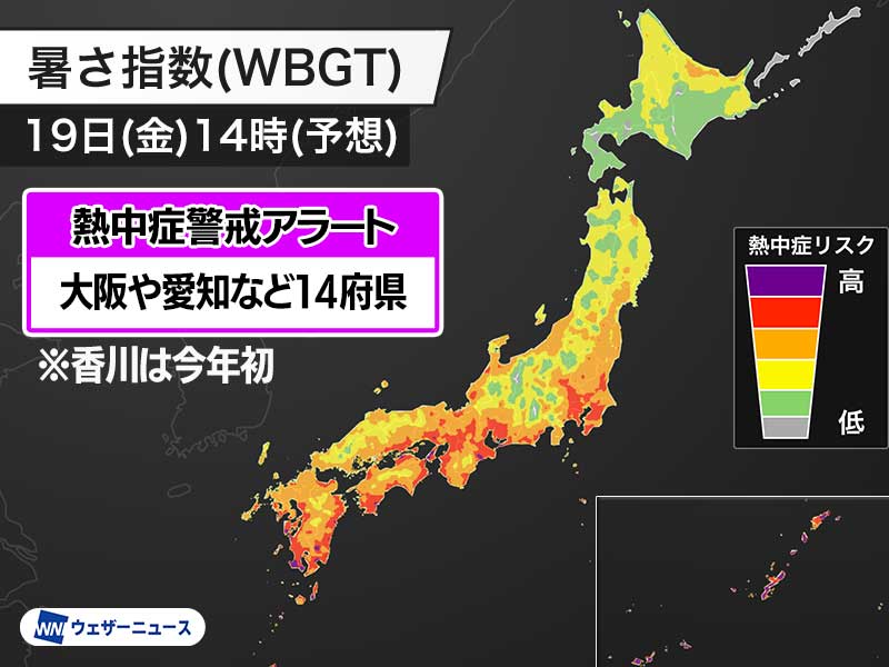 大阪や愛知など14府県に熱中症警戒アラート 香川は今年初 明日19日(金)対象