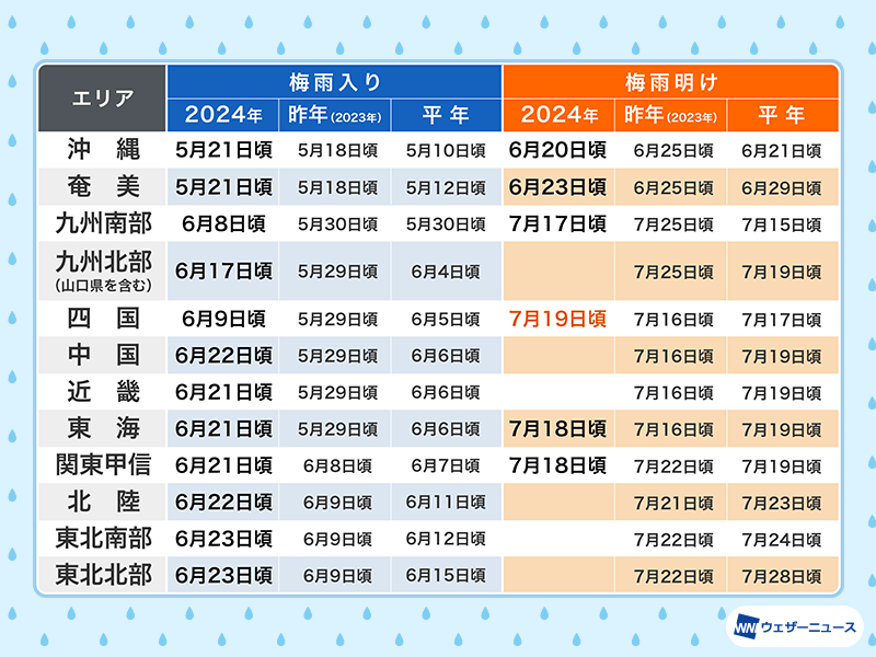 | 沖縄 | 6月20日頃 | 6月25日頃 | 6月21日頃 |