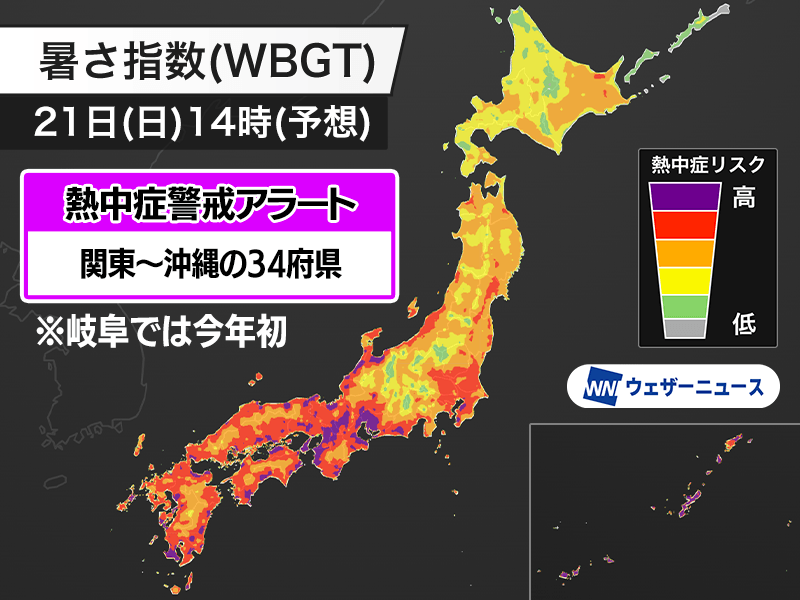 関東以西の34府県に熱中症警戒アラート 岐阜県は今年初