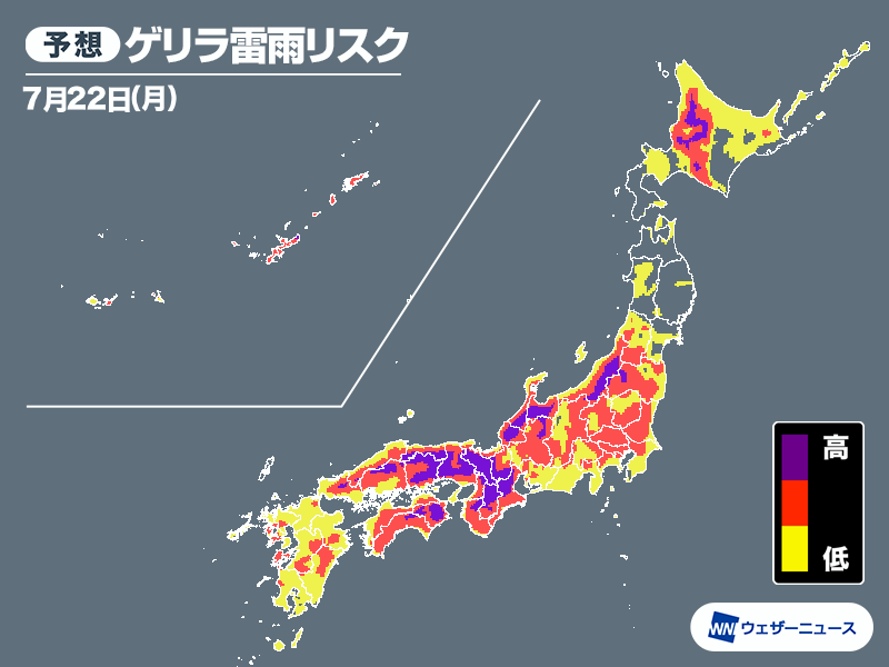 » レーダー 「ゲリラ雷雨リスク」モードをアプリで見る» レーダー 「ゲリラ雷雨リスク」モード