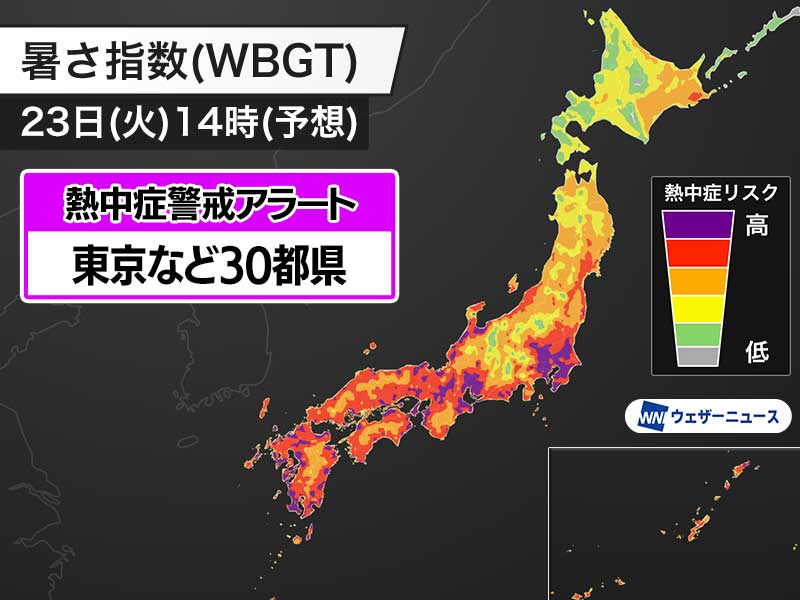 東京など30都県に熱中症警戒アラート 明日23日(火)対象