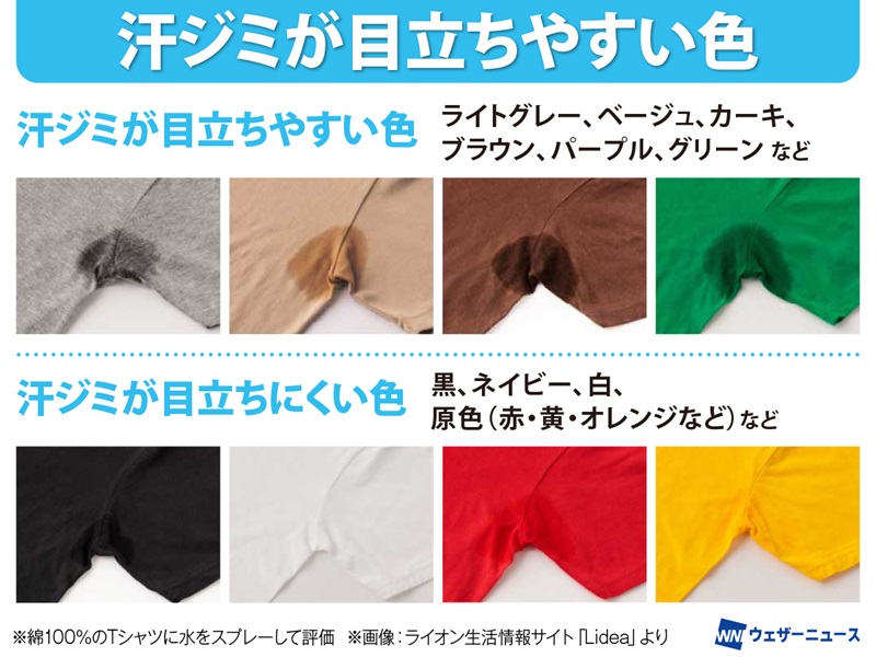 「実は服の色も汗ジミの目立ちやすさのポイントになるので、服選びの参考にしてみてはどうでしょうか」(浅野さん)
