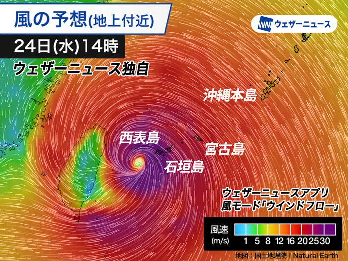 このあと、沖縄の石垣島や西表島に最接近する見込みで、雨風が強まります。動きが遅いため、先島諸島を中心に暴風雨や高波に厳重な警戒が必要です。猛烈な雨が降り、場合によっては線状降水帯が形成されるおそれがあります。
