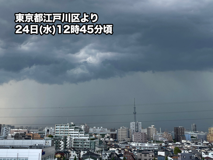 東京都内では午前11時ごろから多摩地方に雨雲が流れ込み、ランチタイムになって東京23区内でも雷雨になっています。東京都立川市や神奈川県相模原市からは雹(ひょう)が降ったという報告もあり、板橋区では落雷により停電しているという情報が寄せられています。