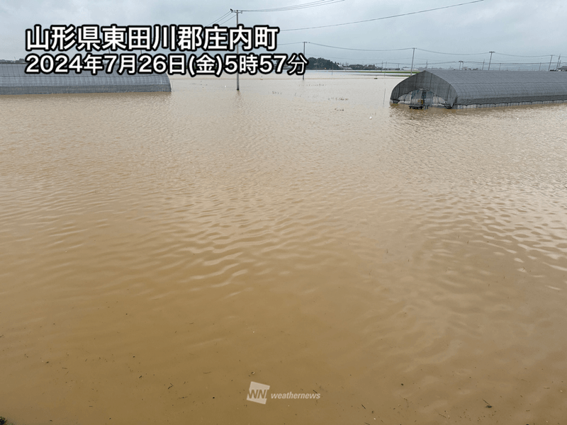 山形県内の日向川や最上川中流、秋田県の子吉川で氾濫が発生しているなど、河川の水位は高い状況が続いています。