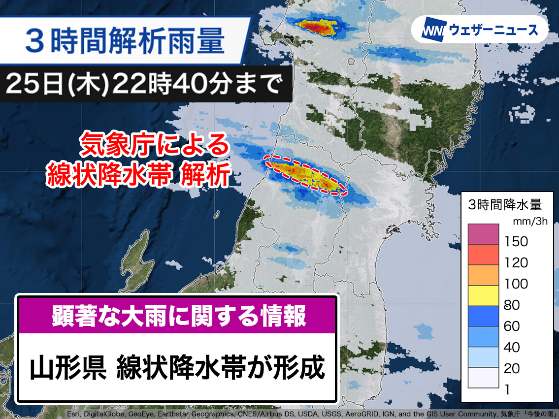山形県で線状降水帯が発生 災害発生に厳重警戒