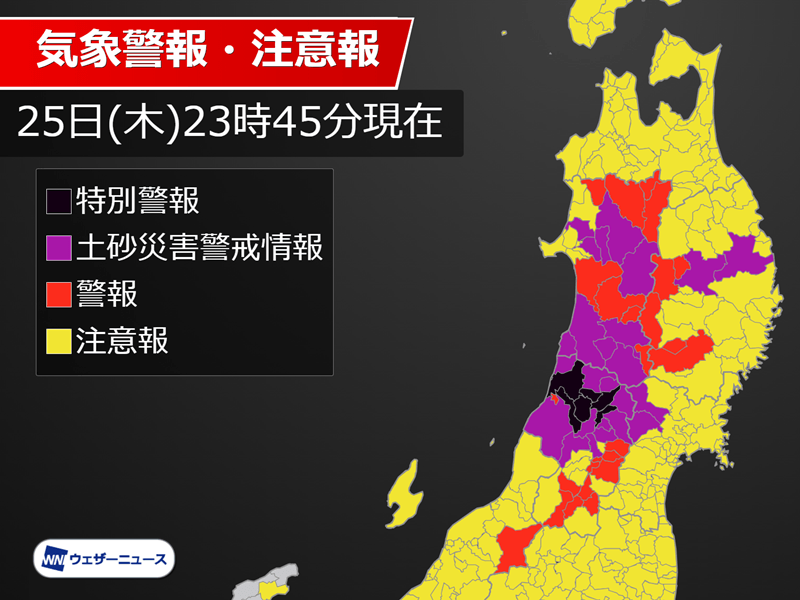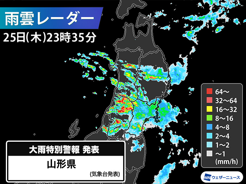 7月25日(木)23時40分、山形県に大雨特別警報が発表されました。