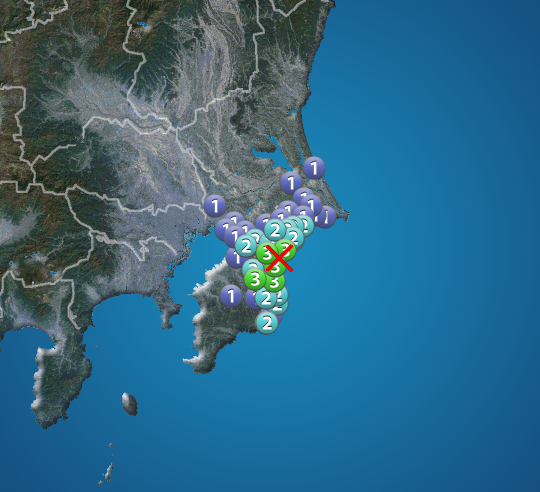 今日7月25日(木)13時01分頃、千葉県で最大震度3を観測する地震がありました。