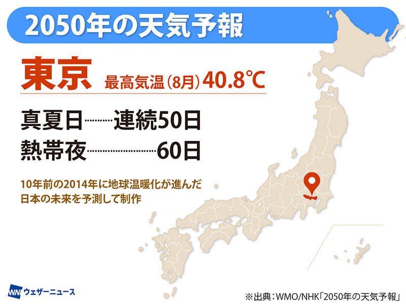 『2050年の天気予報』では、2050年に『東京の連続真夏日日数は50日』というシナリオだったのですが、去年(2023年)、64日という記録が出て、この予想はあっさり超えられてしまいました」(江守さん)