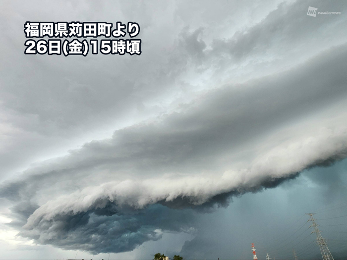 また、福岡県では極めて発達した積乱雲に伴う「アーチ雲」も発生しており、特に落雷や突風、降雹に警戒が必要です。荒天の間は安全な屋内に避難してください。