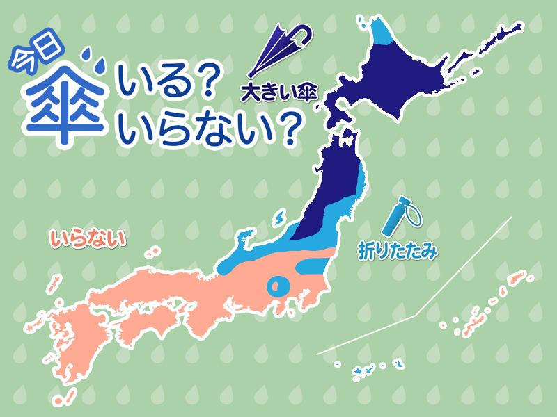 関東北部や山梨でも一部でにわか雨があります。日差しが出ていても折りたたみ傘があると安心です。