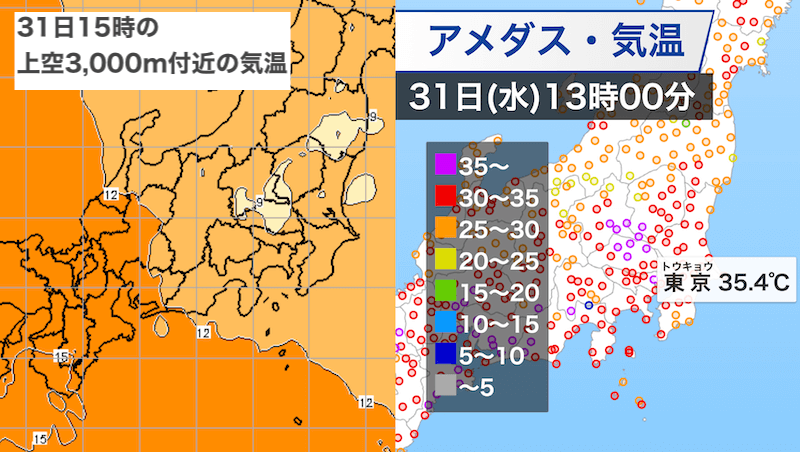 ゲリラ豪雨の要因① 上空と地上の気温差