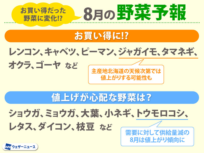 お買い得だった野菜に変化?酷暑の影響は 8月の野菜予報