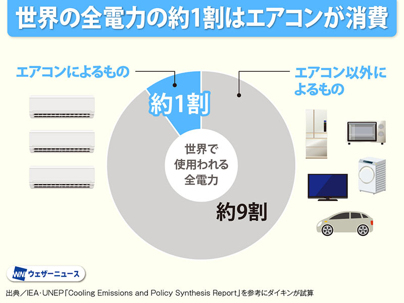 人々の生活や経済発展に大きな役割を果たしているエアコンは、多くの地域で必需品となりつつあります。その反面、エアコンは多くの電力を必要とし、世界で使われている電力全体の約10%をエアコンが占めているとも言われています。