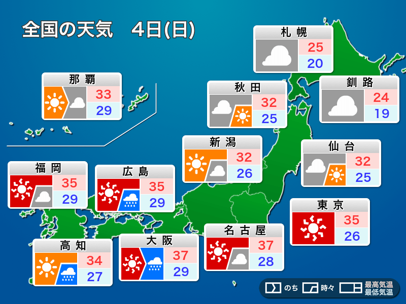 明日8月4日(日)の天気予報…