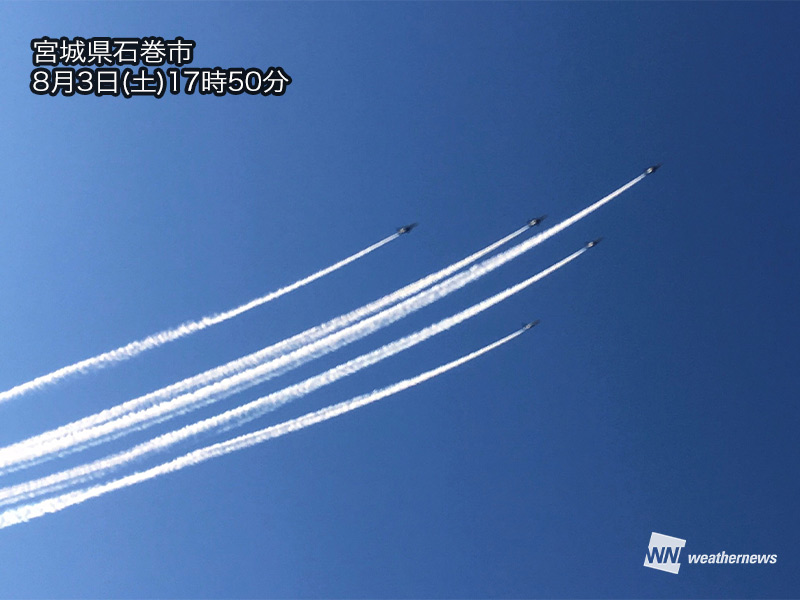 今日の石巻市周辺は夏空が広がり、西日の差し込む黄昏時の展示飛行となりました。
