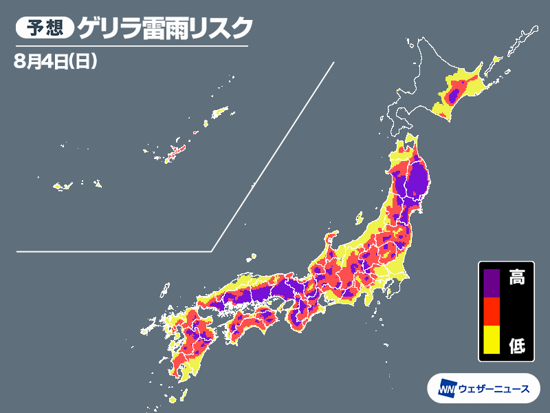 » レーダー 「ゲリラ雷雨リスク」モードをアプリで見る» レーダー 「ゲリラ雷雨リスク」モード