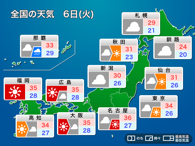 明日8月6日(火)の天気予報…