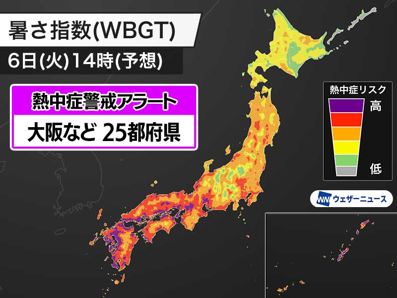 明日8月6日(火)対象の熱中症警戒アラート 愛知や大阪など25都府県