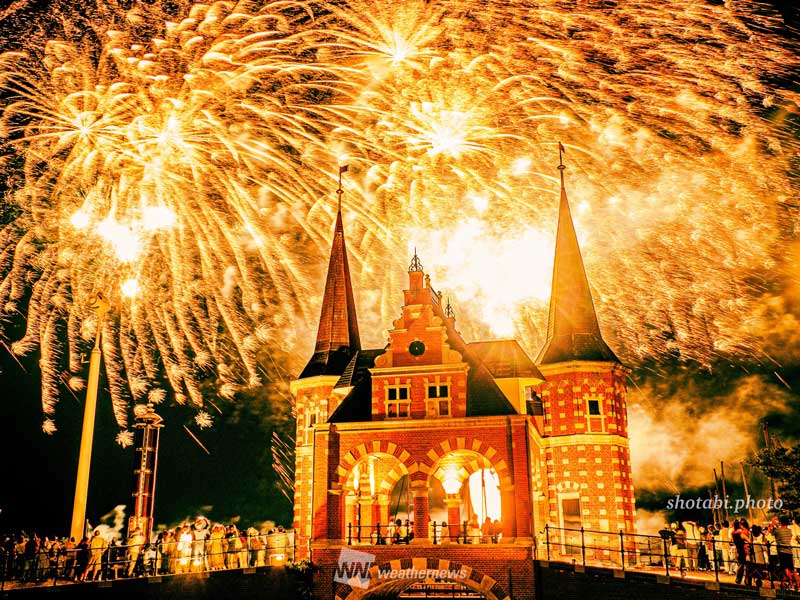 ハウステンボスでは、夏の風物詩「サマーナイト花火」が7月〜8月のうちの19日間開催されます。この三連休中、そしてお盆期間は18日(日)まで毎日開催される予定です。